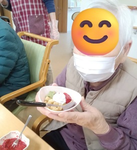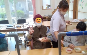 利用者様がご自身で盛り付けをされおやつを作られました。