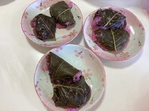 みんなで歌を歌い、桜餅を作っていただきました🌸